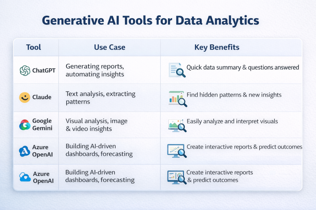 As Generative AI continues to reshape data analytics, building the right skills becomes essential to stay relevant. With a structured and practical learning approach, professionals can gradually understand how to apply AI for data cleaning, visualization, predictive analysis, and smarter decision-making.